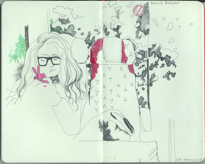 В моих скетчбуках в основном люди. Сами по себе, либо в интерьере/ экстерьере.